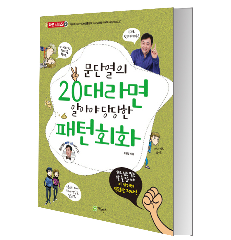 영어전문가 문단열의『20대라면 알아야 당당한 패턴회화』. 20대에게 꼭 필요한 34개의 토픽, 136개의 패턴을 문단열쌤의 패턴 강의와 함께 공부하는 책이다. 20대들이 실제로 사용하는 내용을 중심으로 구성해 보다 흥미롭고 실속 있는 표현들을 익힐 수 있다. 비교적 쉬운 예문들을 3단계로 학습하면서 패턴에 살을 붙이는 연습을 하고, 패턴이 포함된 짧은 대화를 통해 실제 사용 예를 확인한다. 각 유닛의 마지막에서는 공부한 패턴이 모두 포함된 긴 대화를 통해 패턴을 언제 사용하면 자연스러운지, 패턴이 들어간 문장에는 어떻게 대응하면 좋은지를 덤으로 익힐 수 있다.
