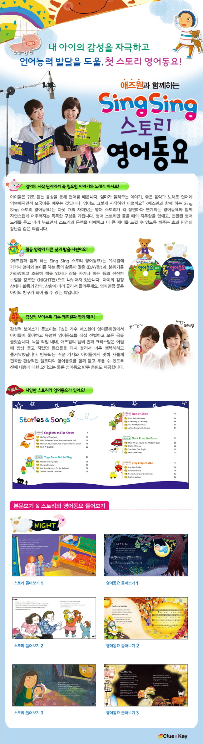 Sign Sing 스토리 영어동요(NIGHT)는 감성적인 보이스가 돋보이는 R&B 여성 듀오 가수 애즈원이 직접 아이들이 좋아하고 유명한 영어동요를 선별하여 모든곡을 직접 불렀다고 하네요. Day편, Nignt편 두