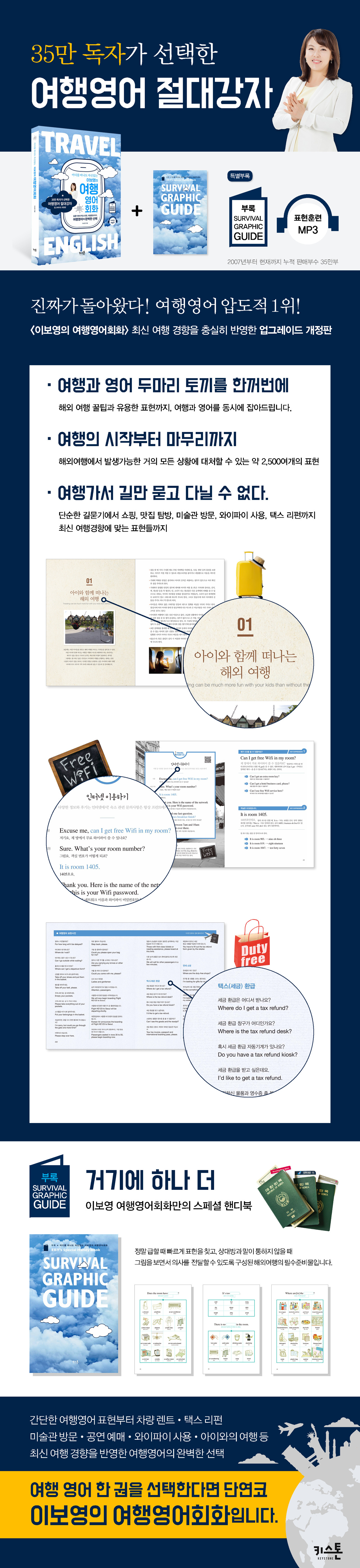 35만 독자가 선택한 여행영어 절대강자『어디를 떠나도 자신있는 이보영의 여행영어회화』 업그레이드 개정판 출간초판 출간후 누적판매부수 35만부라는 기록을 남기며, 여행영어책의 “기준